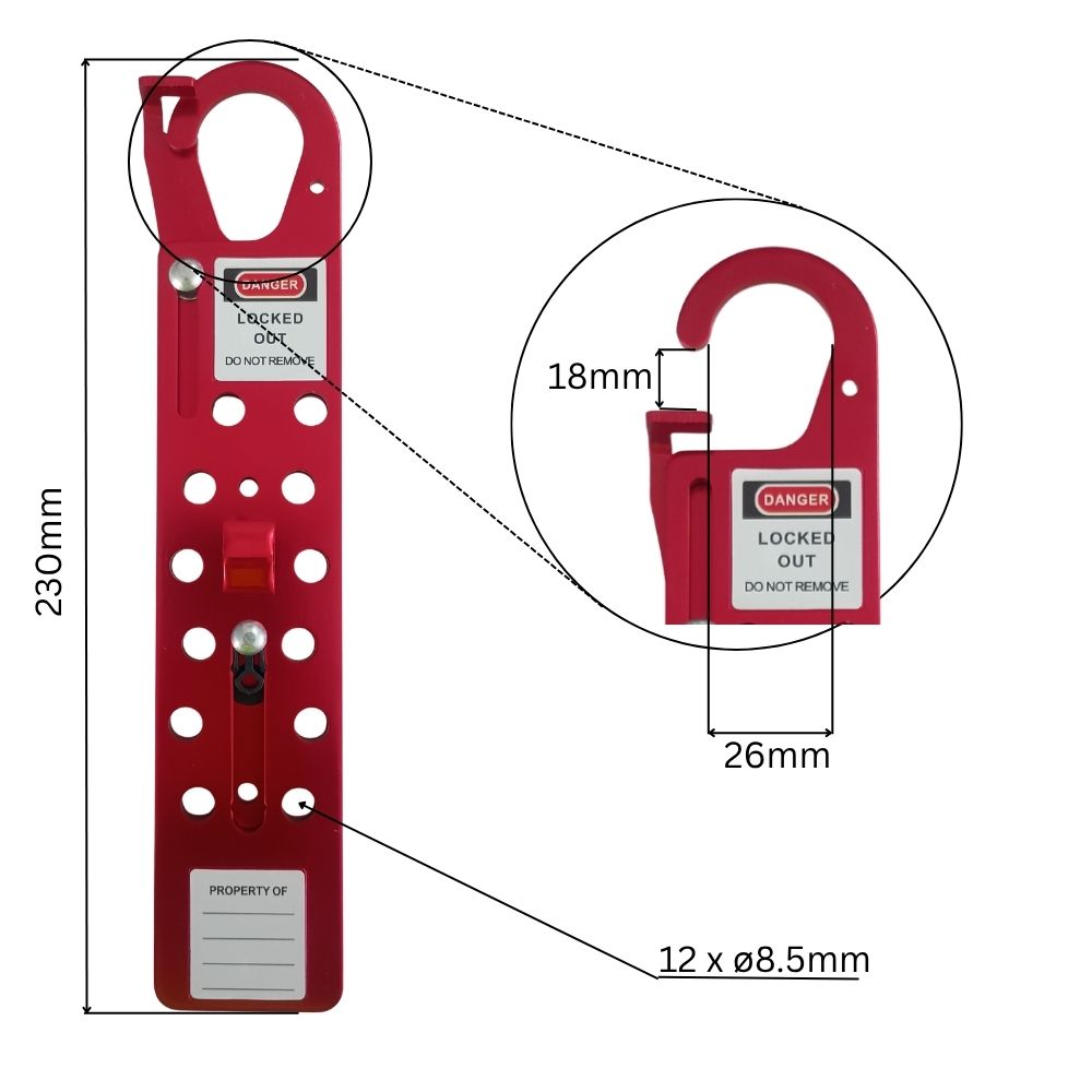 Our 12 Hole Red Hasp 230mm Long is the ultimate security solution, crafted from premium anodized aluminium for enhanced durability. Boasting 12 sturdy 8mm holes, this hasp is fully compatible with any Next Day Safety Padlocks, enabling you to tailor your setup to your needs. The slide action mechanism guarantees a secure, effective lockout and preventing unauthorized access. Elevate your lockout system with the 12 Hole Red Hasp 230mm Long – the perfect combination of resilience, dependability, and adaptability.