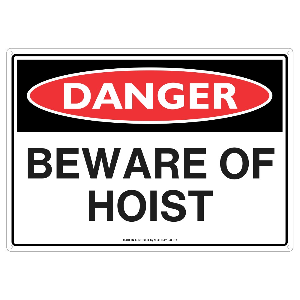 This Danger Beware Of Hoist sign is designed to alert workers and visitors to the potential hazard of operating or moving hoisting equipment in the area. This sign is commonly used in industrial sites, warehouses, construction zones, garages, and any workplace where hoists are in use.
