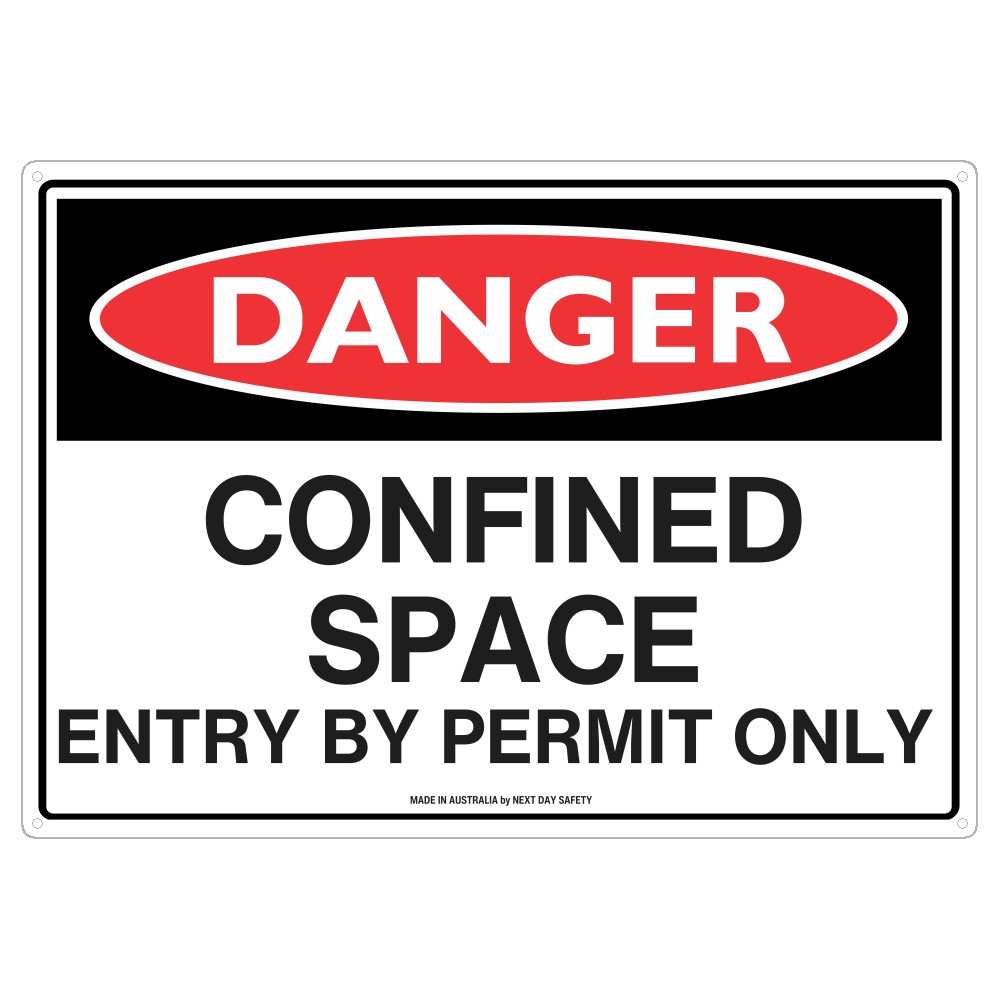 This Danger Confined Space Entry By Permit Only sign is designed to clearly warn staff, contractors, and visitors that a specific area contains a confined space and that entry is only permitted with the proper permit. Such signage is essential for industrial worksites, water treatment plants, construction areas, and anywhere confined spaces pose a safety risk.
