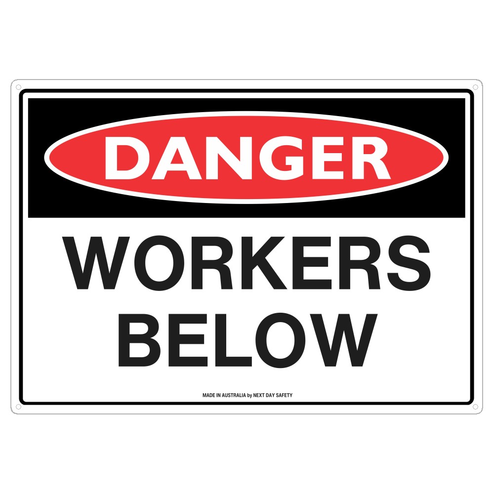 This ‘Danger Workers Below’ sign is designed to alert individuals to the presence of workers beneath an elevated work area. It is essential for construction zones, scaffolding sites, and locations where overhead work is performed to warn anyone above about potential hazards to those working below.