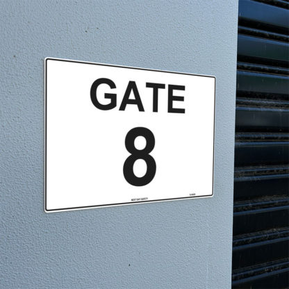 Clearly mark entrances or passages with our ‘Gate 8’ sign, ideal for facilities with multiple access points such as warehouses, schools, and transportation hubs. This sign helps in guiding both employees and visitors to the right location, enhancing the organization and safety of your operations. Next Day Safety prints these signs to order, usually on the same day. To ensure your workplace meets Australian safety standards, visit our safety sign requirements page at /product-category/safety-signs/. For more details or assistance, please contact us.