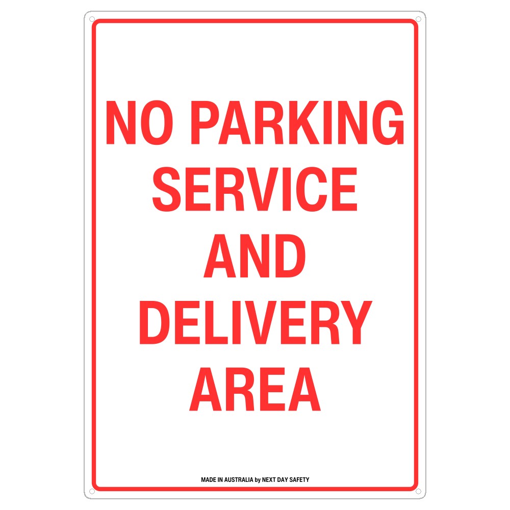 This ‘No Parking Service And Delivery Area’ sign is designed to clearly mark areas reserved for service vehicles and deliveries only. It helps prevent unauthorised parking in zones critical for business operations, loading docks, and service entrances.