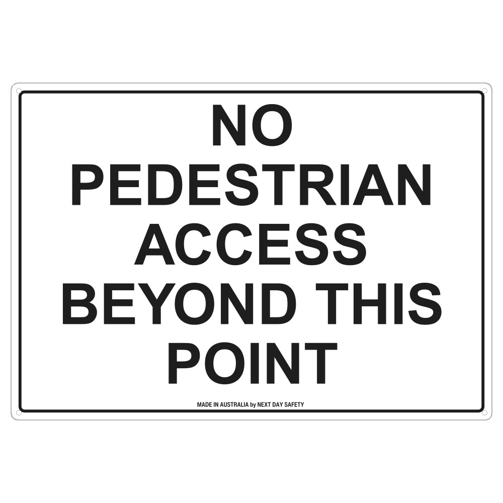 This ‘No Pedestrian Access Beyond This Point’ sign is suitable for construction sites, factories, warehouses, or any area where pedestrians are not permitted for safety or security reasons. It ensures only authorised personnel proceed past specific boundaries, minimising the risk of accidents or unauthorised entry.