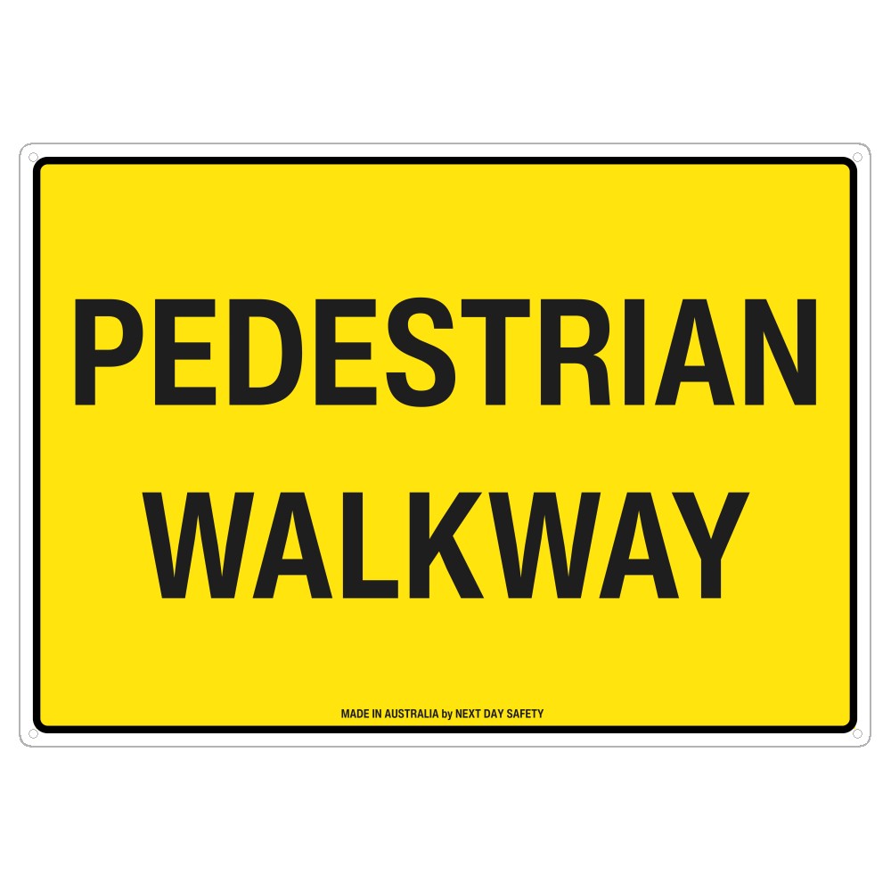 This Pedestrian Walkway sign is designed to clearly indicate designated walking paths for pedestrians in workplaces, warehouses, factories, and large sites. The high-visibility yellow background and bold black text ensure that the message is easily seen from a distance, helping to separate pedestrian zones from vehicle or machinery areas for improved safety.