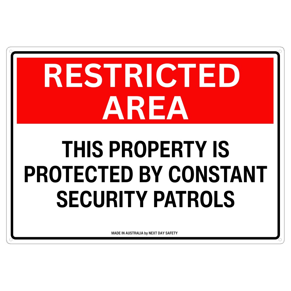 This Restricted Area Security Patrols Sign is ideal for indicating areas with restricted access and active security monitoring. Use it at warehouses, commercial buildings, construction sites, and other private properties where security patrols are present. Signs like this help reinforce site security and deter unauthorised entry.