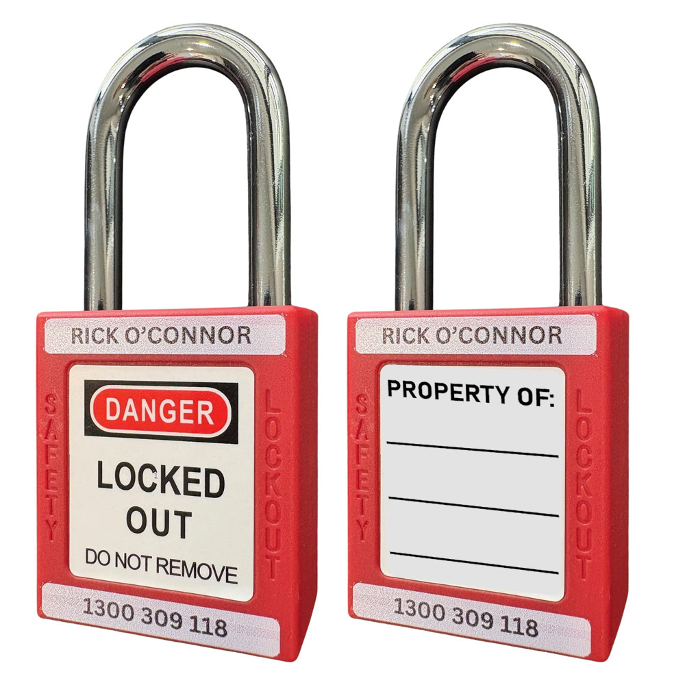 2 x lockout padlocks all keyed the same or keyed different. Chrome plated steel shackle or non-conductive nylon safety shackle, lockout padlocks.