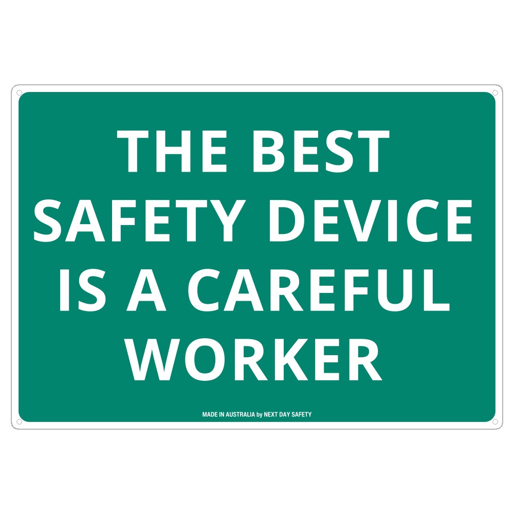 This ‘The Best Safety Device Is A Careful Worker’ sign is ideal for encouraging employees and visitors to prioritise safety and mindfulness in any work environment. Commonly used in factories, warehouses, workshops, and construction sites, this sign serves as a daily reminder to foster a safety-conscious culture among workers.