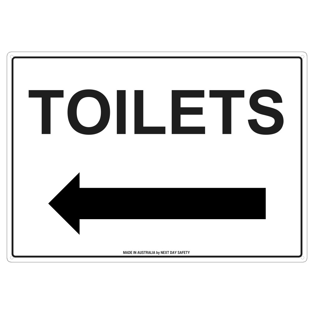 This ‘Toilets’ directional sign with a left arrow is ideal for use in public buildings, offices, schools, shopping centres, and event venues, helping visitors easily locate restrooms. Clear wayfinding signage is important for accessibility and convenience in any premises.