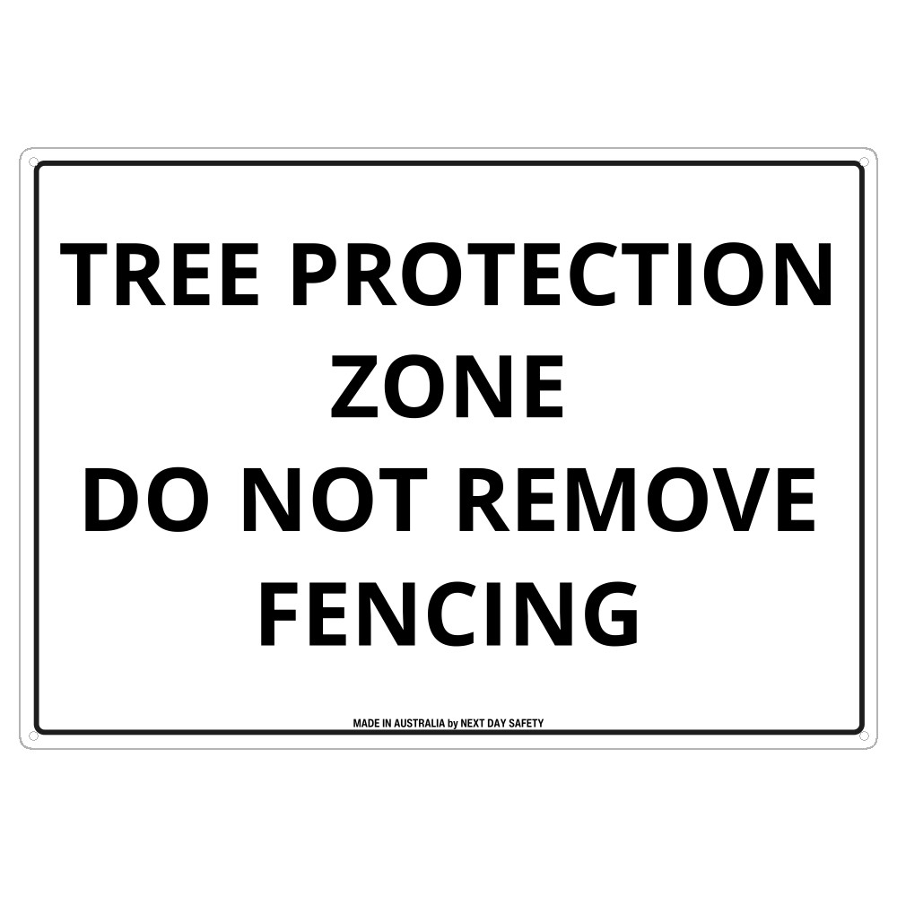 This ‘Tree Protection Zone Do Not Remove Fencing’ sign is used to clearly mark areas where trees are being preserved, ensuring that temporary or permanent fencing is not disturbed. These signs are commonly found on construction sites, public parks, and landscaping projects to protect valuable trees from potential harm. Australian workplaces are required to display safety and site-specific signs in accordance with local regulations to maintain site integrity and safety. Next Day Safety prints these signs to order, usually on the same day, and ships Australia-wide. For more information about our full range, visit our Safety Signs page or contact us today.